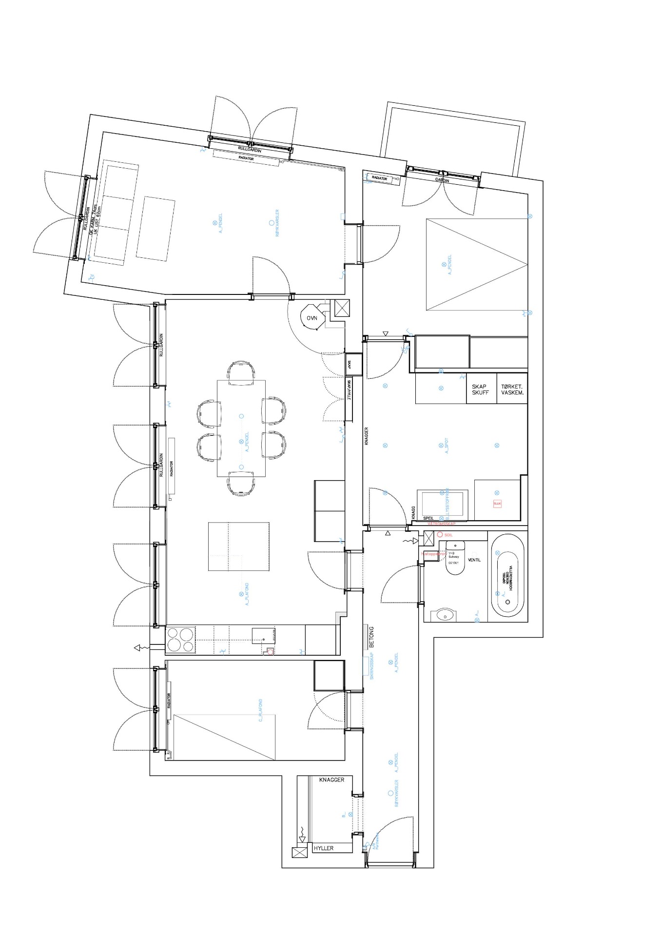 Nye skyvedører mellom spiserom og stue og på soverommet
